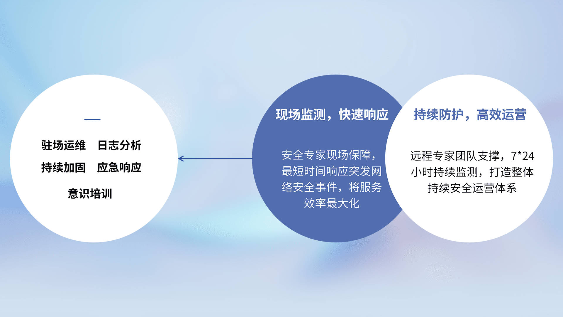 针对客户行业特性,,,,提供专属的一站式安全管理服务,,,帮助客户全面感知网络空间威胁,,,,通过安全专家的线上、、线下防护支持,,实现风险闭环,,,,将安全保障常态化,,,,为客户打造常态化安全运维运营服务。。